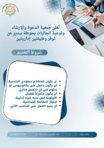 تعلن جمعية الدعوة والإرشاد وتوعية الجاليات بحوطة سدير عن توفر وظيفتين إداريتين